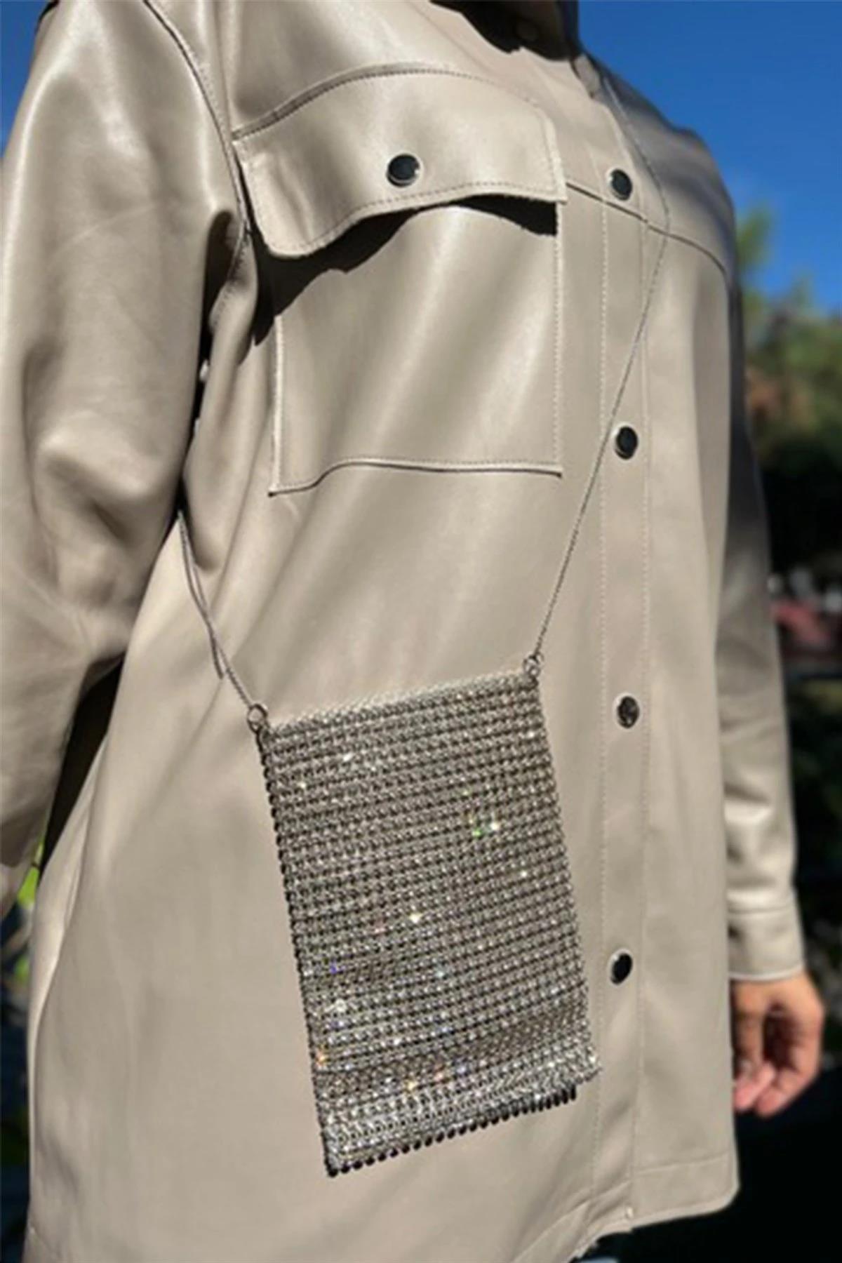 • Swarovski taşlı ve ışıltılı telefon çantası.